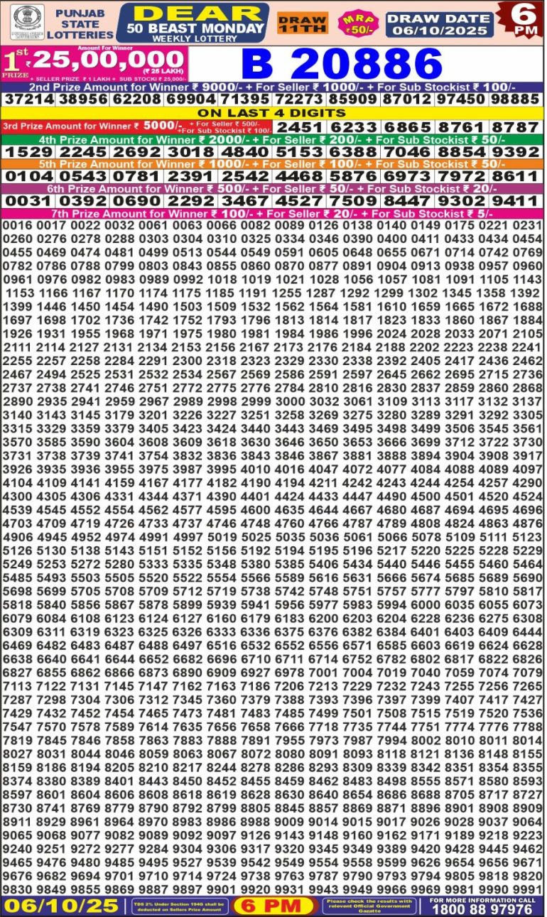 Dear 50 beast Monday weekly lottery 6pm 06/10/2025 October 6, 2025 Leave a Comment on Dear 50 beast Monday weekly lottery 6pm 06/10/2025 Posted in Results Share now: XFacebookPinterestRedditVKDiggLinkedinMix Related Results 0 22 Dear lucky Saturday weekly lottery 8pm 08/11/2025 0 21 Dear 2000 monthly lottery 7pm 08/11/2025 0 22 Dear 50 jackal Saturday weekly lottery 6pm 08/11/2025 0 17 Dear elite Saturday weekly lottery 6pm 08/11/2025
