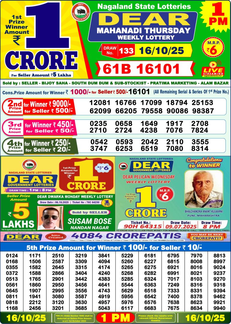 Dear mahanadi Thursday weekly lottery 1pm 16/10/2025 October 16, 2025 Leave a Comment on Dear mahanadi Thursday weekly lottery 1pm 16/10/2025 Posted in Results Share now: XFacebookPinterestRedditVKDiggLinkedinMix Related Results 0 20 Dear lucky Saturday weekly lottery 8pm 08/11/2025 0 19 Dear 2000 monthly lottery 7pm 08/11/2025 0 22 Dear 50 jackal Saturday weekly lottery 6pm 08/11/2025 0 15 Dear elite Saturday weekly lottery 6pm 08/11/2025
