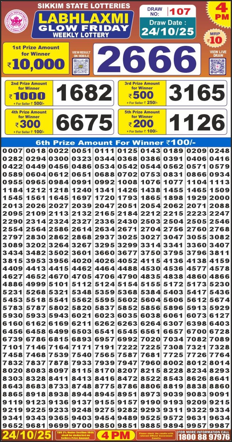 Labhlaxmi glow Friday weekly lottery 4pm 24/10/2025 October 24, 2025 Leave a Comment on Labhlaxmi glow Friday weekly lottery 4pm 24/10/2025 Posted in Results Share now: XFacebookPinterestRedditVKDiggLinkedinMix Related Results 0 21 Dear lucky Saturday weekly lottery 8pm 08/11/2025 0 20 Dear 2000 monthly lottery 7pm 08/11/2025 0 22 Dear 50 jackal Saturday weekly lottery 6pm 08/11/2025 0 16 Dear elite Saturday weekly lottery 6pm 08/11/2025