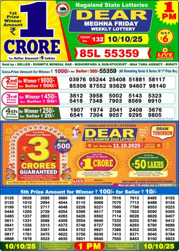 Dear meghna Friday weekly lottery 1pm 10/10/2025