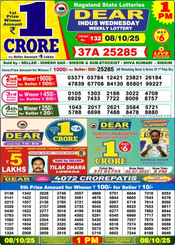 Dear Indus Wednesday weekly lottery 1pm 08/10/2025