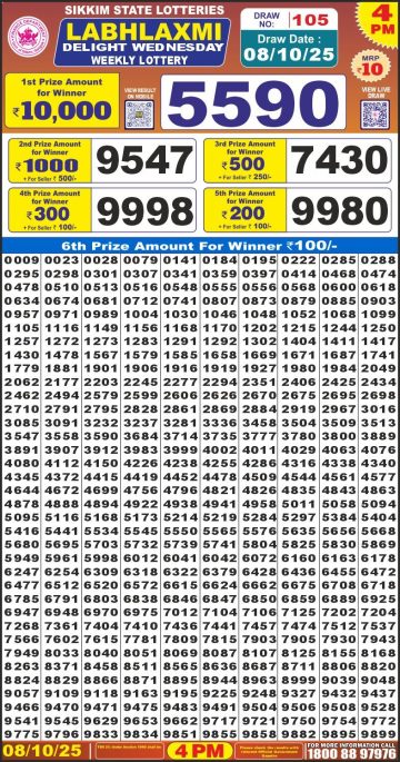 Labhlaxmi delight Wednesday weekly lottery 4pm 08/10/2025
