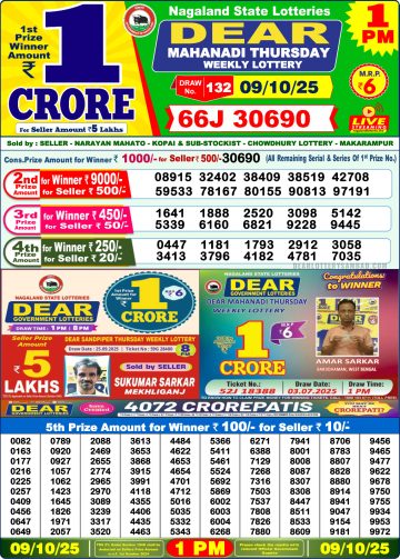 Dear mahanadi Thursday weekly lottery 1pm 09/10/2025