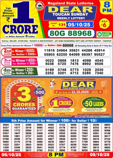 Dear Godavari Tuesday weekly lottery 1pm 07/10/2025