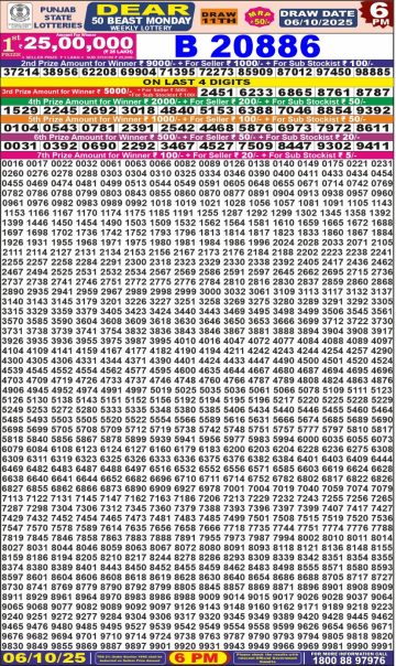 Dear 50 beast Monday weekly lottery 6pm 06/10/2025