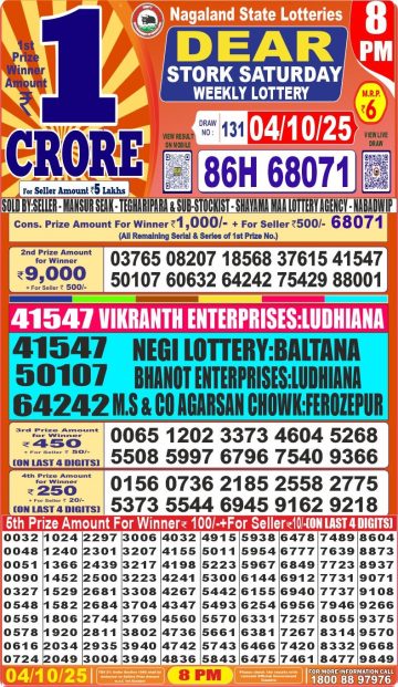 Dear elite saturday weekly lottery 6pm 04/10/2025