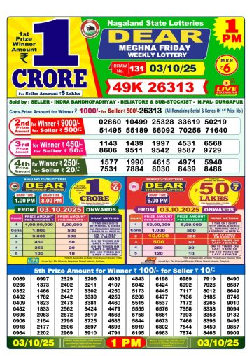 Dear meghna Friday weekly lottery 1pm 03/10/2025