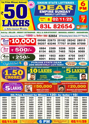 Labhlaxmi power sunday weekly lottery 4pm 02/11/2025