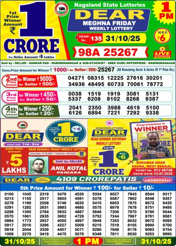 Dear meghna Friday weekly lottery 1pm 31/10/2025
