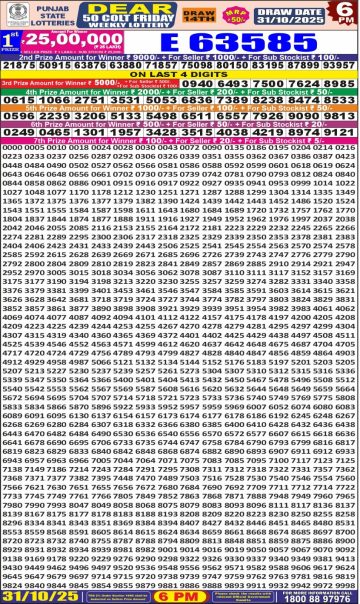 Dear 50 colt Friday weekly lottery 6pm 31/10/2025
