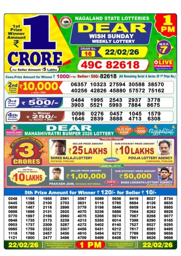 Dear wish sunday weekly lottery 1pm 22/02/2026