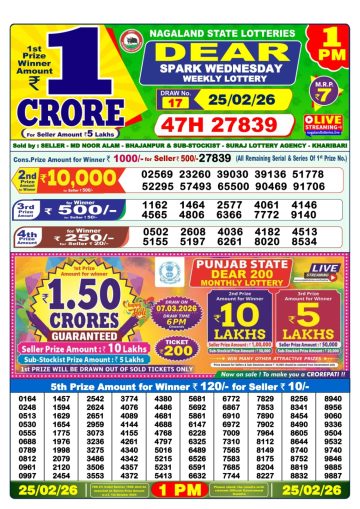 Dear Star Thursday weekly lottery 1pm 26/02/2026