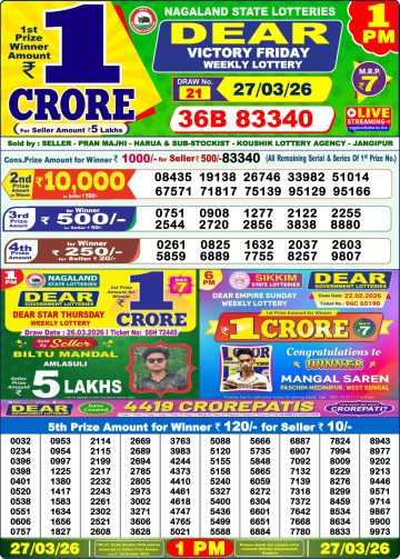 Dear victory friday weekly lottery 1pm 27/03/2026