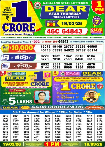 Dear Star Thursday weekly lottery 1pm 19/03/2026