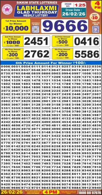 Labhlaxmi glad Thursday weekly lottery 4pm 26/02/2026