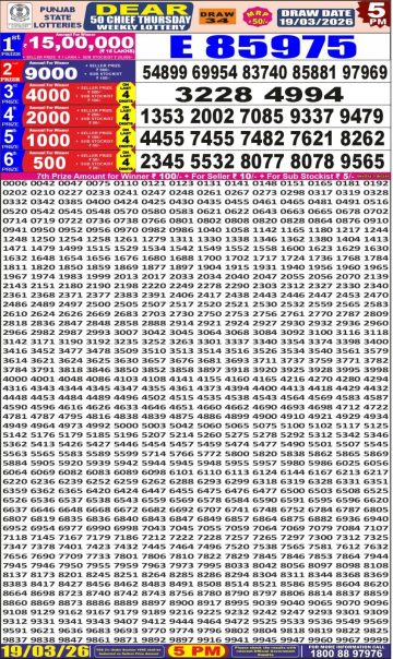 Dear supreme Thursday weekly lottery 6pm 19/03/2026