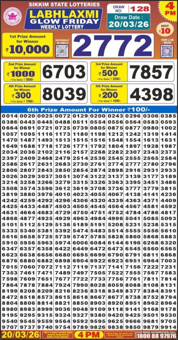 Labhlaxmi glow friday weekly lottery 4pm 20/03/2026