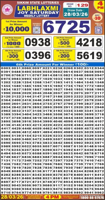 Labhlaxmi joy Saturday weekly lottery 4pm 28/03/2026