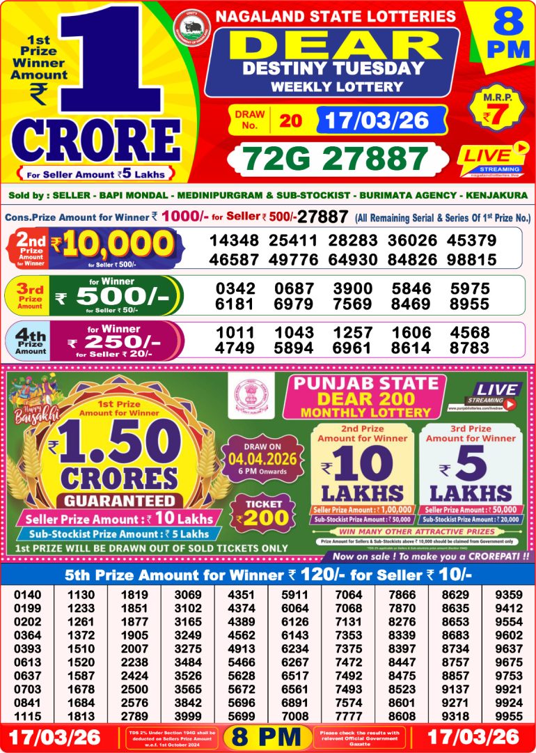 March 17, 2026  Leave a Comment on Dear destiny tuesday weekly lottery 8pm 17/03/2026  Posted in Dear 8PM Result