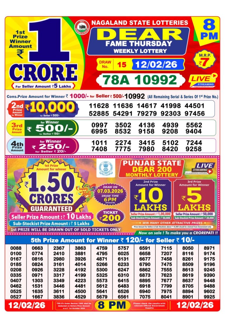 Dear fame Thursday weekly lottery 8pm 12/02/2026 February 12, 2026 Leave a Comment on Dear fame Thursday weekly lottery 8pm 12/02/2026 Posted in Dear 8PM Result Share now: XFacebookPinterestRedditVKDiggLinkedinMix Related Results 0 3 Dear lucky Saturday weekly lottery 8pm 28/02/2026 0 7 Dear horizon Friday weekly lottery 8pm 27/02/2026 0 8 Dear fame Thursday weekly lottery 8pm 26/02/2026 0 14 Dear destiny Tuesday weekly lottery 8pm 24/02/2026