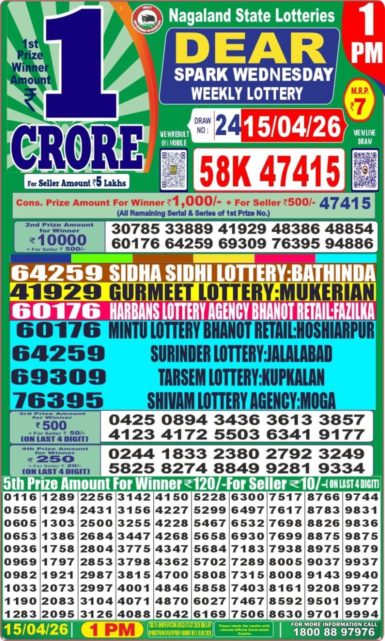 DEAR SPARK WEDNESDAY WEEKLY LOTTERY 1PM 15/04/2026 April 15, 2026 Leave a Comment on DEAR SPARK WEDNESDAY WEEKLY LOTTERY 1PM 15/04/2026 Posted in Dear 1PM Result Share now: XFacebookPinterestRedditVKDiggLinkedinMix Related Results 0 1 DEAR STAR THURSDAY WEEKLY LOTTERY 1PM 16/04/2026 0 8 DEAR shine Tuesday WEEKLY LOTTERY 1PM 14/04/2026 0 9 Dear vision Saturday weekly lottery 1pm 11/04/2026 0 7 Dear victory friday weekly lottery 1pm 10/04/2026