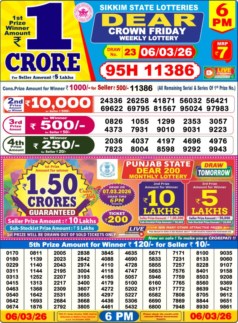 March 6, 2026  Leave a Comment on Dear crown Friday weekly lottery 6pm 06/03/2026  Posted in Dear 6PM Result