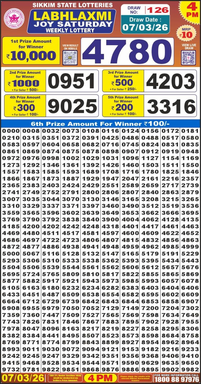 Labhlaxmi joy Saturday weekly lottery 4pm 07/03/2026 March 7, 2026 Leave a Comment on Labhlaxmi joy Saturday weekly lottery 4pm 07/03/2026 Posted in Results Share now: XFacebookPinterestRedditVKDiggLinkedinMix Related Results 0 1 Dear legend Monday weekly lottery 6pm 04/04/2026 0 1 Dear 50 beast Monday weekly lottery 5pm 04/04/2025 0 1 Labhlaxmi joy Saturday weekly lottery 4pm 04/04/2026 0 1 Dear vision Saturday weekly lottery 1pm 04/04/2026