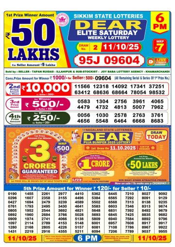 Dear elite Saturday weekly lottery 6pm 11/10/2025