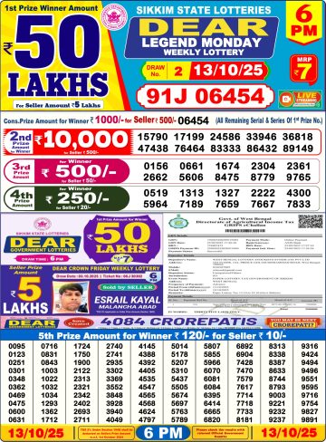 Dear legend Monday weekly lottery 6pm 13/10/2025