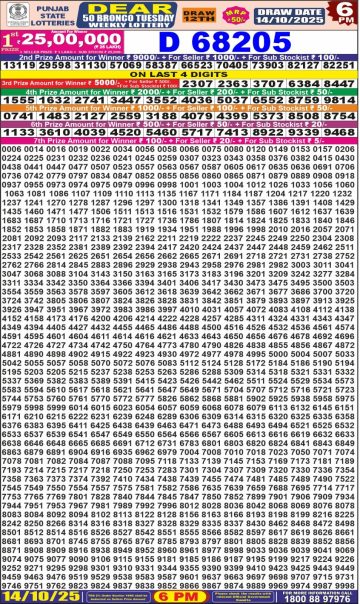 Dear Godavari Tuesday weekly lottery 1pm 14/10/2025